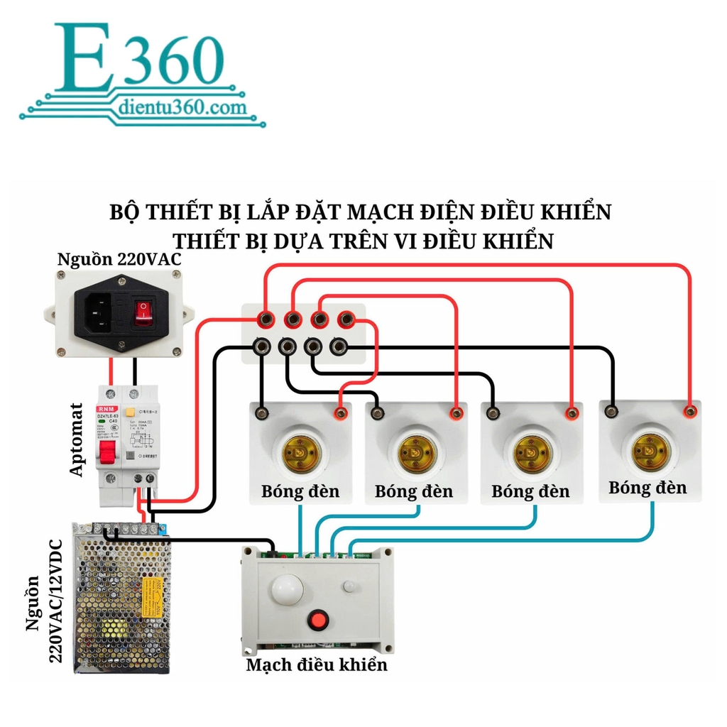 - Bảng điều khiển thiết bị thể hiện rõ sơ đồ chức năng: tín hiệu (cảm biến), xử lý (vi điều khiển), thiết bị chấp hành (các thiết bị điện)