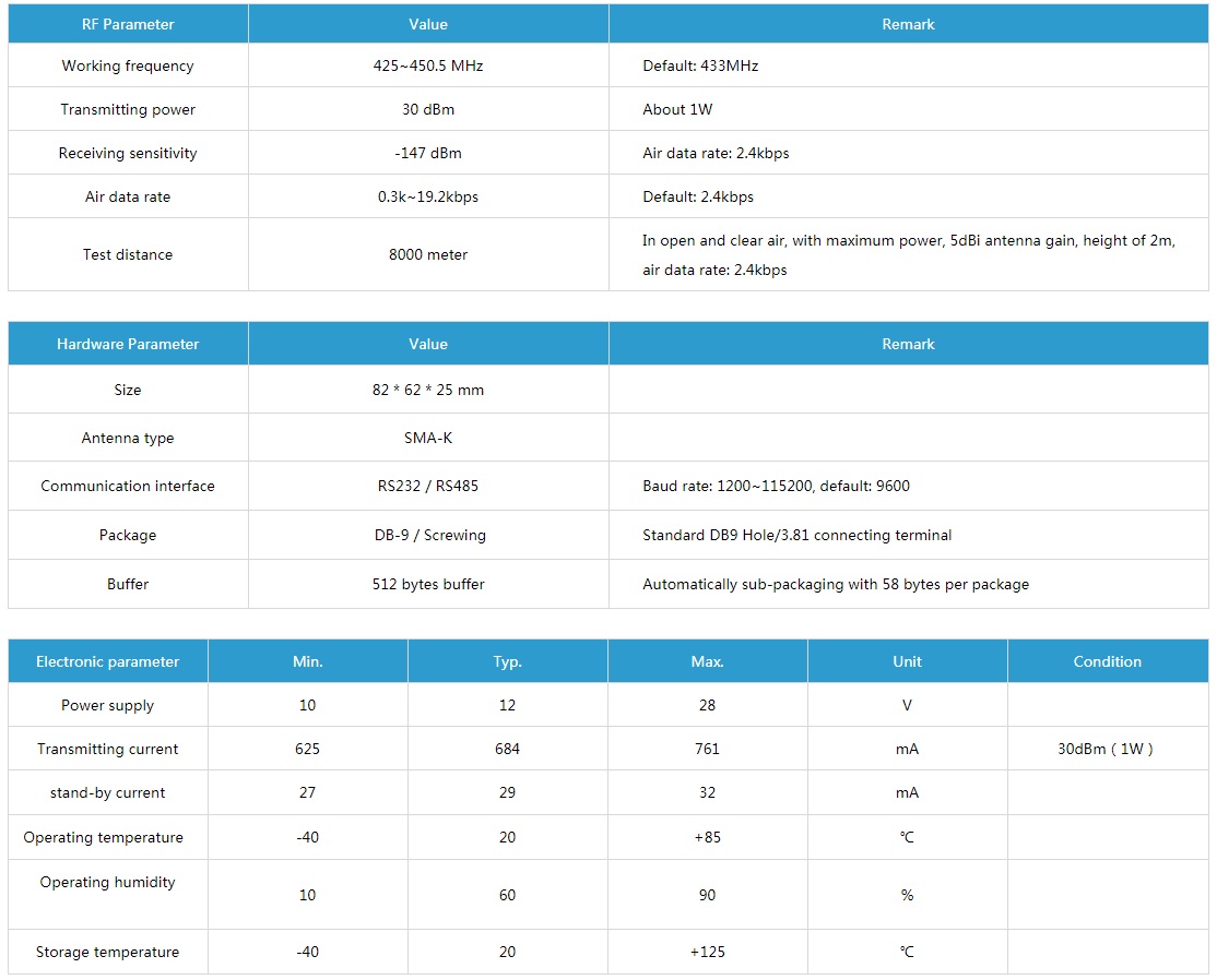 Tốc độ truyền: 0.3 - 19.2 Kbps ( mặc định 2.4 Kbps)