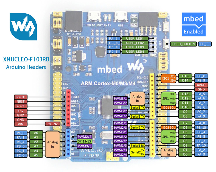 Tương thích với NUCLEO-F103RB, trên mạch sử dụng chip STM32F103RBT6 Cortex-M3.