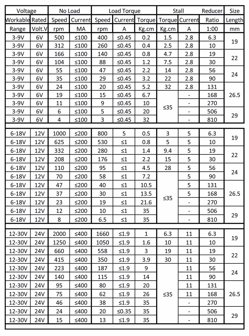 Bảng Thông Số Dòng Sản Phẩm GB37-545: