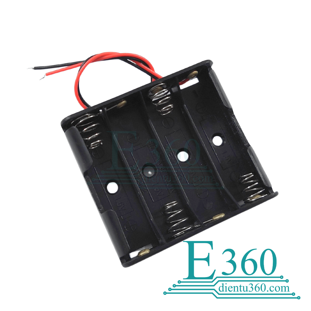 Hộp đế pin 4×AA dùng để lắp 4 viên pin tiểu AA, cung cấp nguồn điện ổn định cho các mạch điện tử, Arduino, robot và đồ DIY. Sản phẩm có thiết kế nhỏ gọn, chắc chắn, dễ lắp đặt và thay pin.