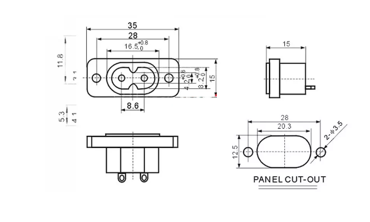 JACK CẮM NGUỒN AC SỐ 8 CÓ TAI là sản phẩm cổng cấp nguồn AC chữ số 8 được sử dụng rất phổ biến trong các thiết bị điện. Sản phẩm được thiết kế vỏ cách điện tốt, có gờ bắt vít trên vỏ hộp sản phẩm, 2 chân tiếp xúc chịu tải lớn lên đến 10A.