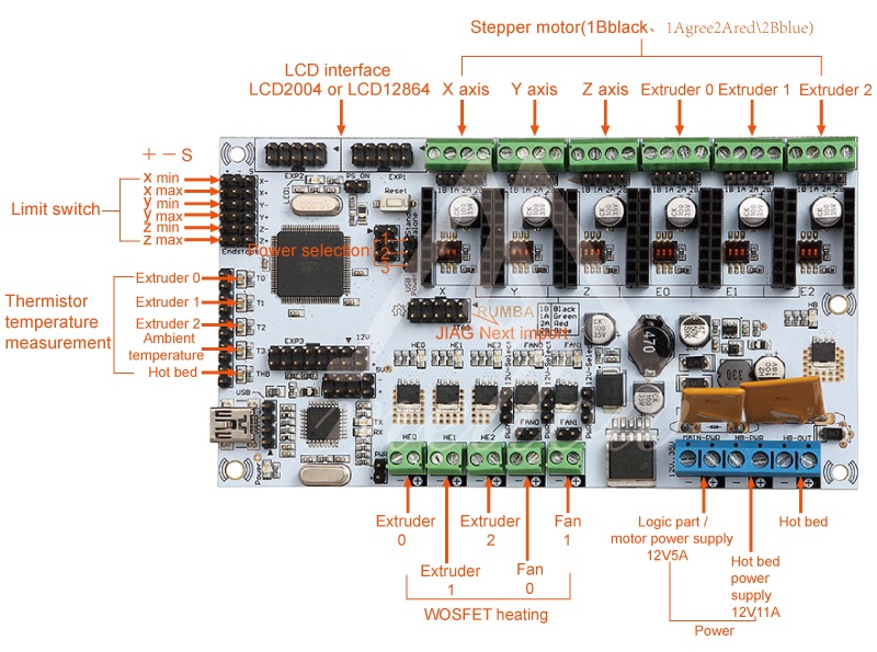 Main Máy In 3D Rumba tương thích với driver A4988 hoặc Drv8825