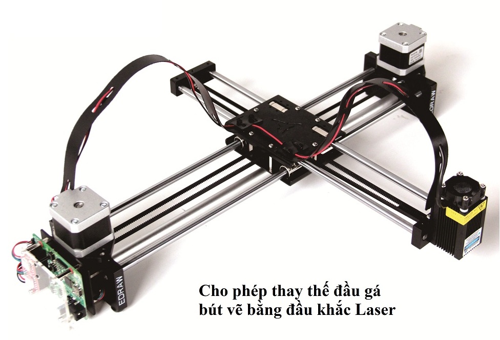 + Có thể thay thế đầu bút bằng laser công suất để khắc, mạch điều khiển hỗ trợ 2 trục.