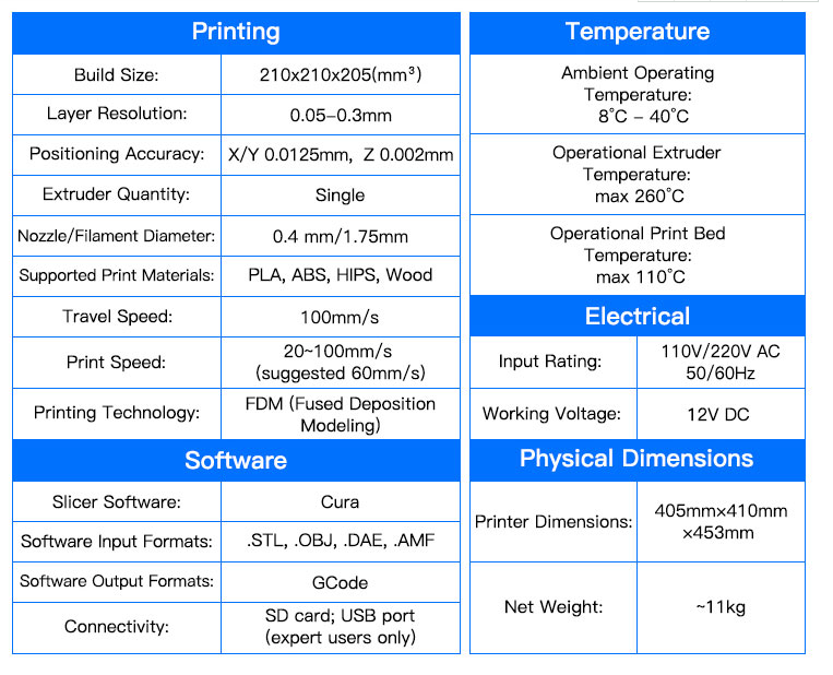 Khổ in : 210 x 210 x 205mm (DxRxC)