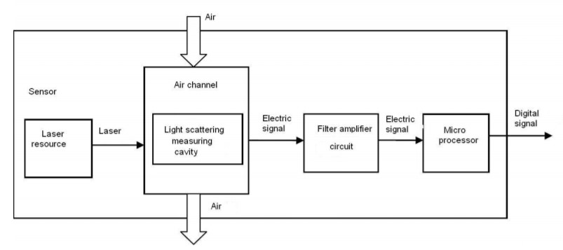 PMS7003 là một loại cảm biến nồng độ bụi kỹ thuật số mà có thể dùng để đo nồng độ bụi trong không khí, PMS7003 sẽ đo nồng độ bụi và đưa ra đầu ra của mạch dưới dạng tín hiệu số (digital), sản phẩm sử dụng tán xạ của laser sau đó thu thập tán xạ của ánh sáng theo mức độ nhất định và có được sự thay đổi của tán xạ của ánh sánh, sau cùng số liệu được đưa vào vi xử lí để tính toán dựa theo lý thuyết MIE.