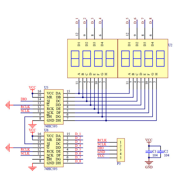 - Module 8 Led 7 thanh dùng IC595 là module chuyên dùng để điều khiển 8 Led 7 thanh hiển thị ra những chữ số mong muốn.