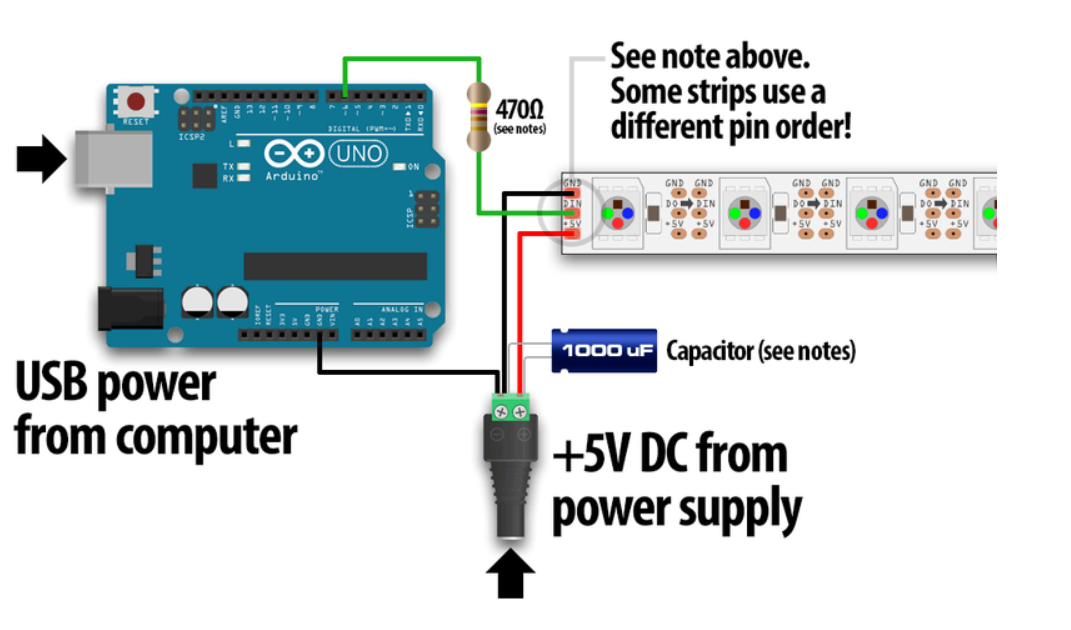 pixels.setPixelColor(i, pixels.Color(0,200,0)); // Moderately bright green color.