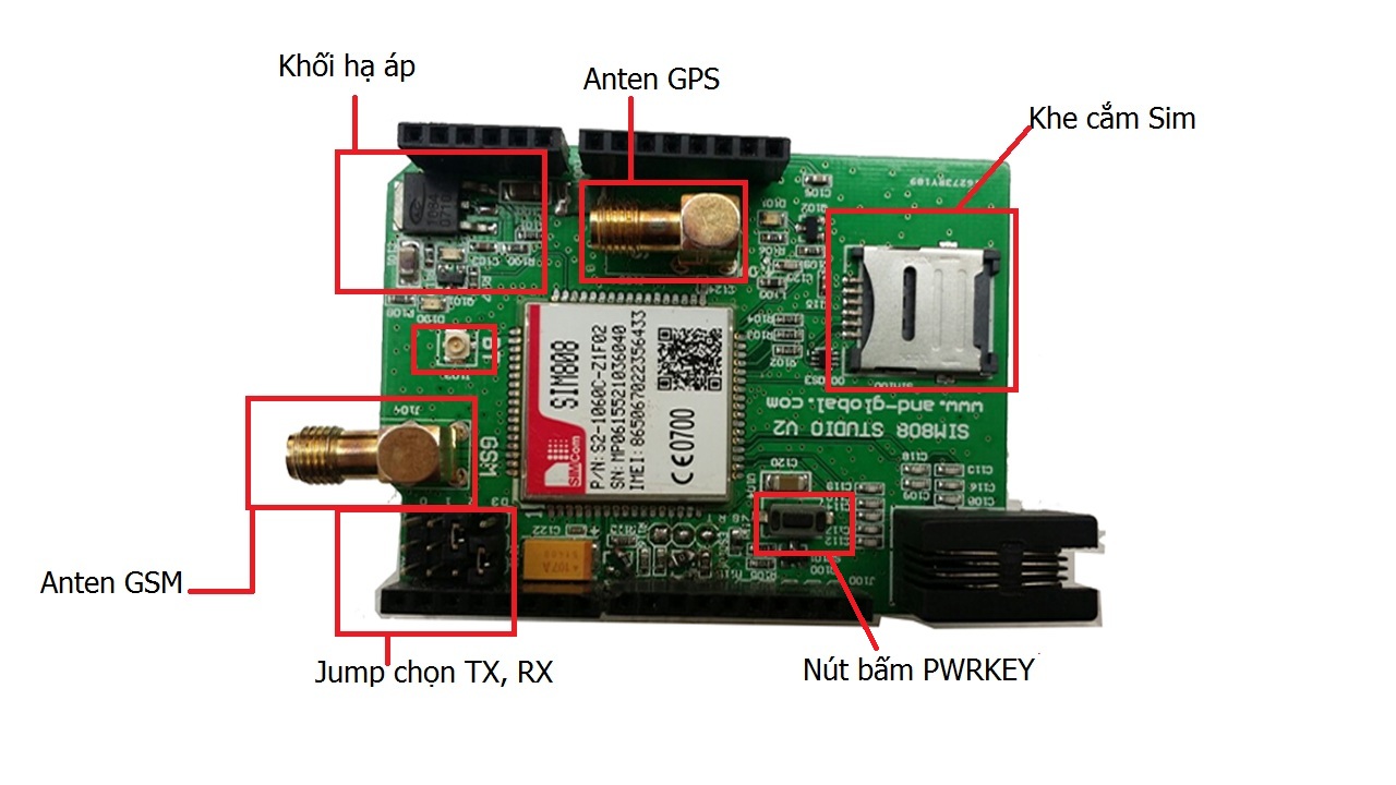 Shield Sim808 được thiết kế tích hợp đầy đủ chức năng GPS, GSM, GPRS, Bluetooth góp phần tiết kiệm chi phí và thiết kế cho người dùng. Sim808 phát triển cải tiến hơn sim908 ở sự ổn định và có thêm chức năng bluetooth. GPS của sim808 hoạt động ổn định, chính xác ngay cả khi anten đặt trong nhà. Giao tiếp của sim808 theo chuẩn UART với các tập lệnh AT như sim900a hay sim908. Sim808 phù hợp với viễn thông Việt Nam.