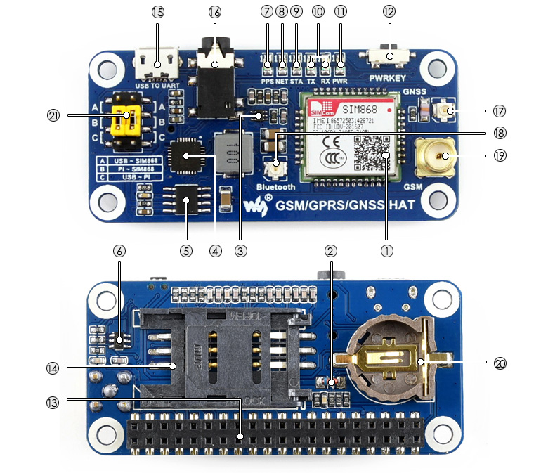 Shiled SIM868 GSM/GPRS/GNSS/Bluetooth HAT hỗ trợ Raspberry Pi tăng cường các tính năng đa giao tiếp như: GSM, GPRS, GNSS và Bluetooth. Nó cho phép raspberry pi của bạn dễ dàng thực hiện cuộc gọi điện thoại, gửi tin nhắn, kết nối với Internet không dây, định vị vị trí, truyền dữ liệu qua Bluetooth...